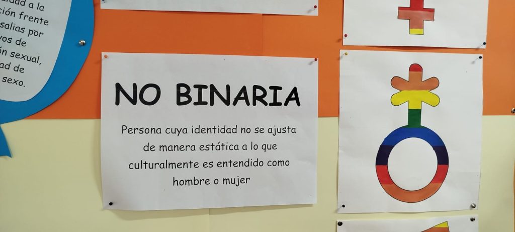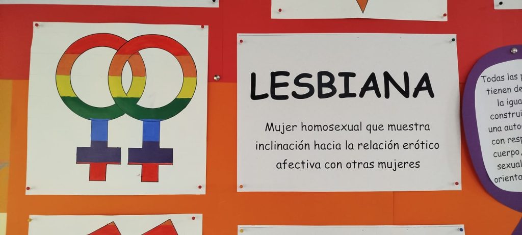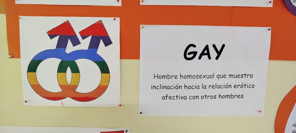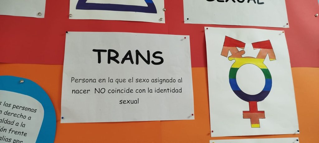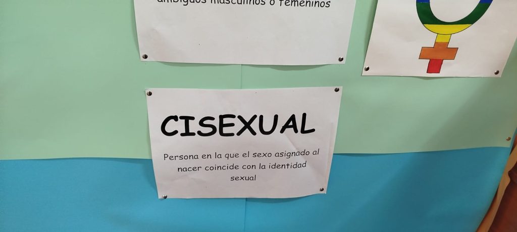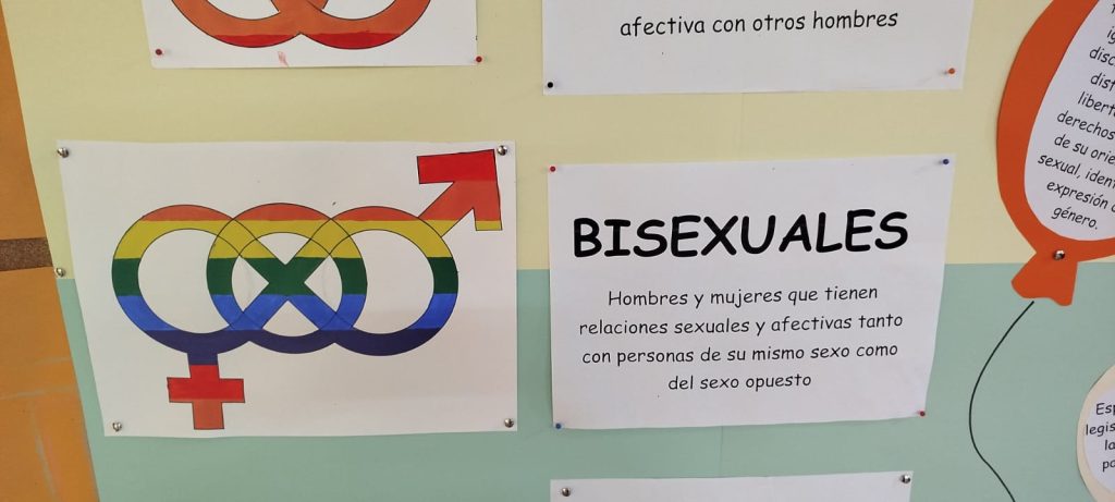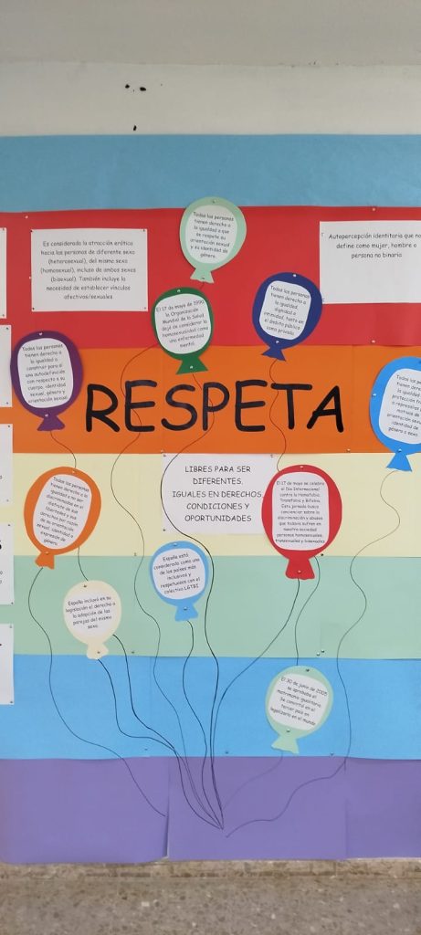 Este panel tiene como objetivo principal visibilizar y aclarar conceptos fundamentales como la diferencia entre orientación sexual e identidad de género, y generar en nuestro alumnado una actitud crítica frente a la discriminación, así como una postura activa a favor del respeto a las personas LGTBI+.