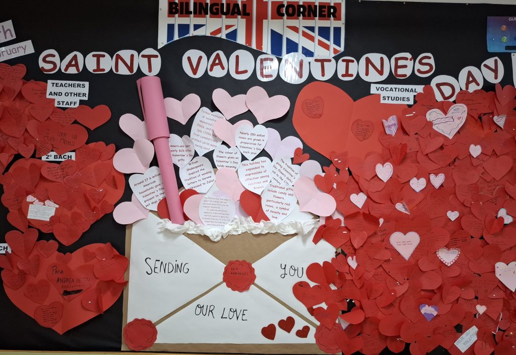 Red floods this February our bilingual wall to celebrate Valentine’s Day with messages of love, friendship, affection, and admiration among the members of the school community. Here, all the languages studied in our school have been welcomed: English, Spanish, French, and Latin