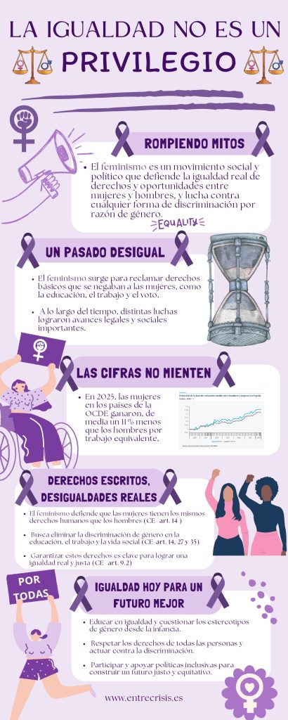 El alumnado de 1º de Bachillerato (grupos F y G), dentro de la asignatura Educación para la Convivencia Democrática, ha presentado un proyecto integral de sensibilización con motivo del Día Internacional de la Mujer (8M): una carta reflexiva, un cartel infográfico y una pieza audiovisual.